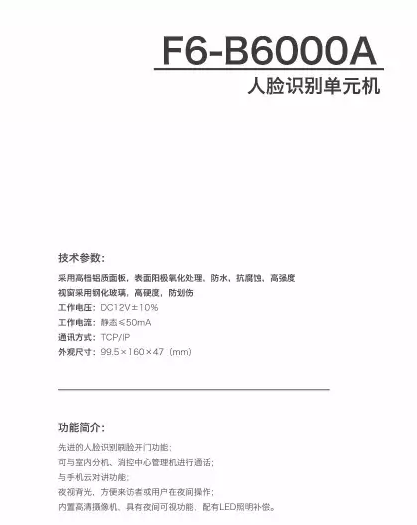 人臉識別單元機F6-B6000A——安防商盟網(wǎng)安防產(chǎn)品