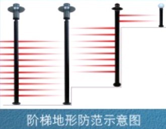 紅外線幕墻階梯地形防范示意圖