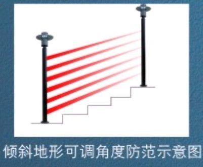 紅外線幕墻傾斜地形可調(diào)角度防范示意圖